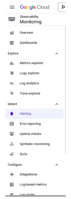 Alerting: Section of Google Cloud Monitoring where alerts for incidents or specific events are configured and managed.