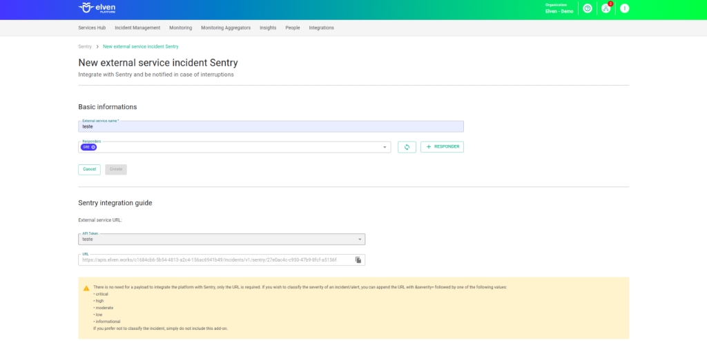 Configuration Guide for External Service Incident Sentry on the Elven Platform