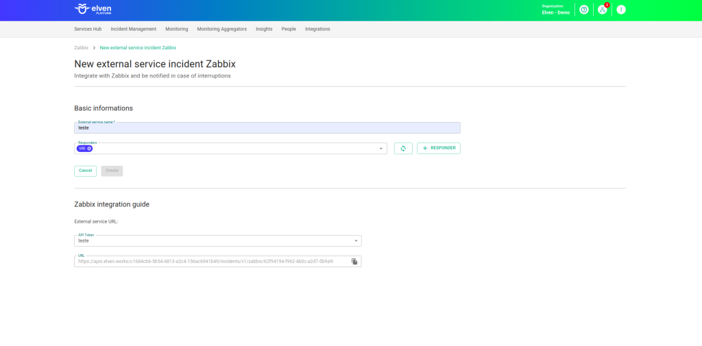 The integration between Zabbix and the Elven Platform was designed to simplify your incident management, centralizing alerts in one place. By connecting these tools, you ensure a more efficient and agile operation, with accurate information always at hand.