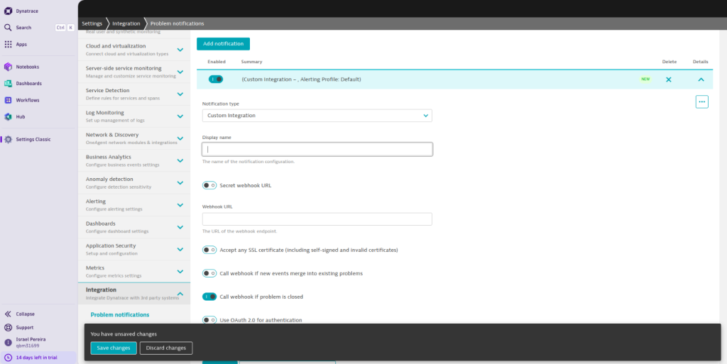 Configuring Webhooks in Dynatrace