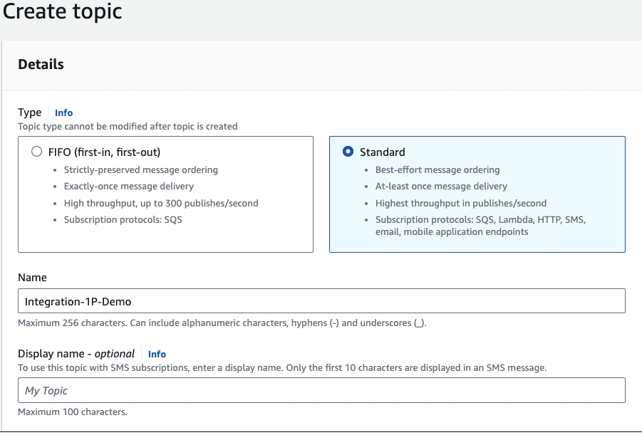 Endpoint: Destination where SNS notifications are sent, such as a Lambda Function configured for integration.