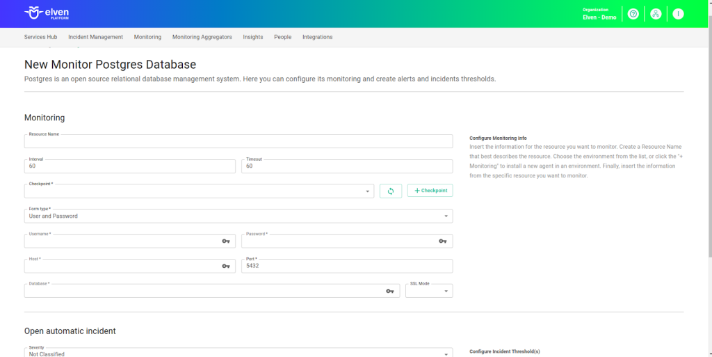 Postgres Database Monitor Configuration Guide on the Elven Platform