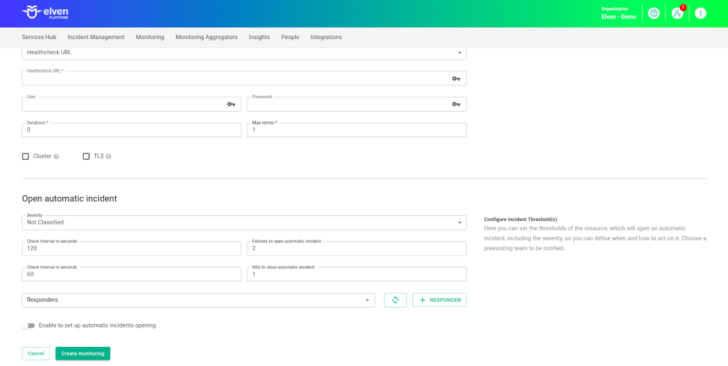 Enable to set up automatic incidents opening: An option that, when enabled, activates automatic incident creation upon detection of critical issues.