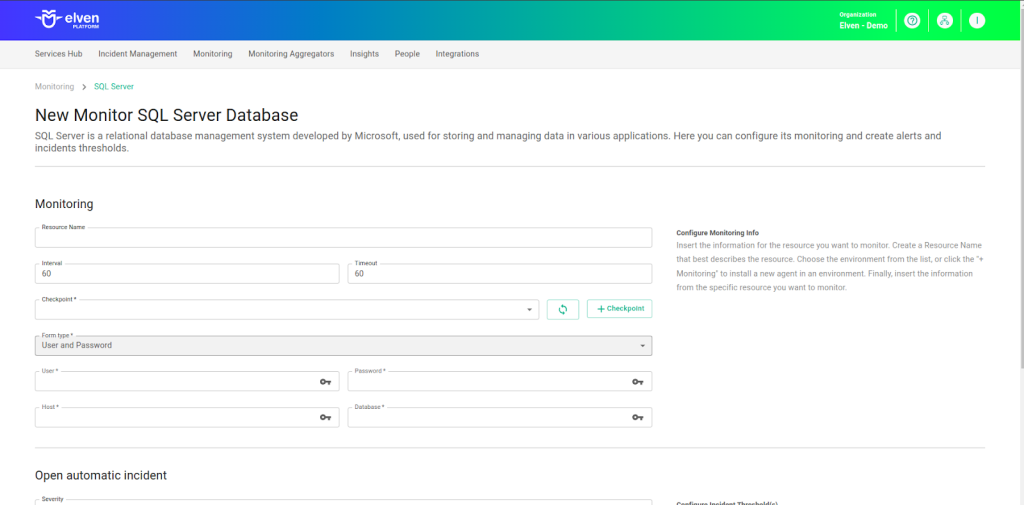SQL Server Database Monitor Configuration Guide on the Elven Platform