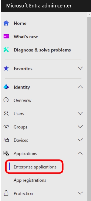 Enterprise Applications: Corporate applications managed in Microsoft Entra, used to integrate third-party solutions with centralized authentication.