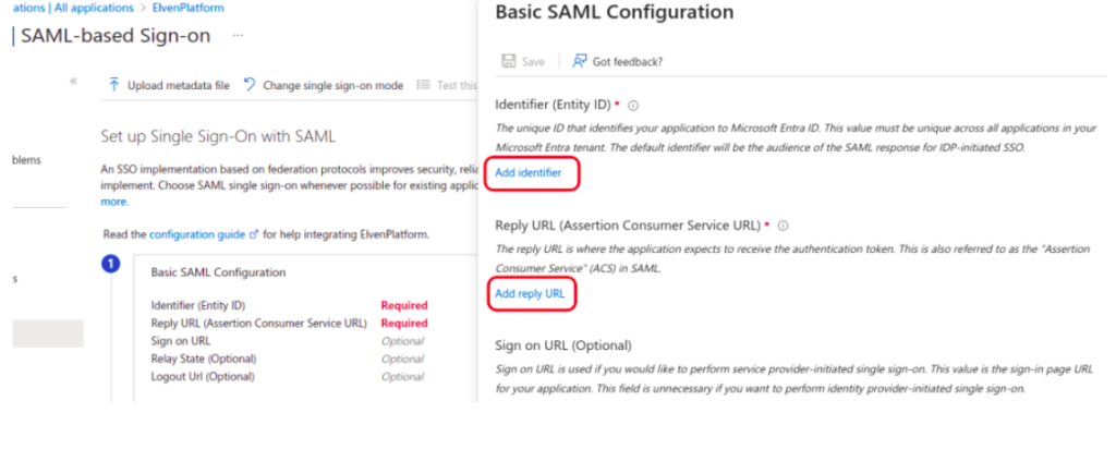 Configuration Guide for SSO with SAML for integration between Microsoft Entra and the Elven Platform