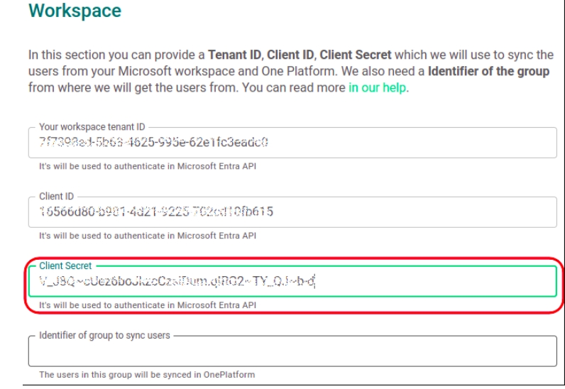 Client Secret: Secret key generated to authenticate applications when accessing Microsoft Entra APIs and services.