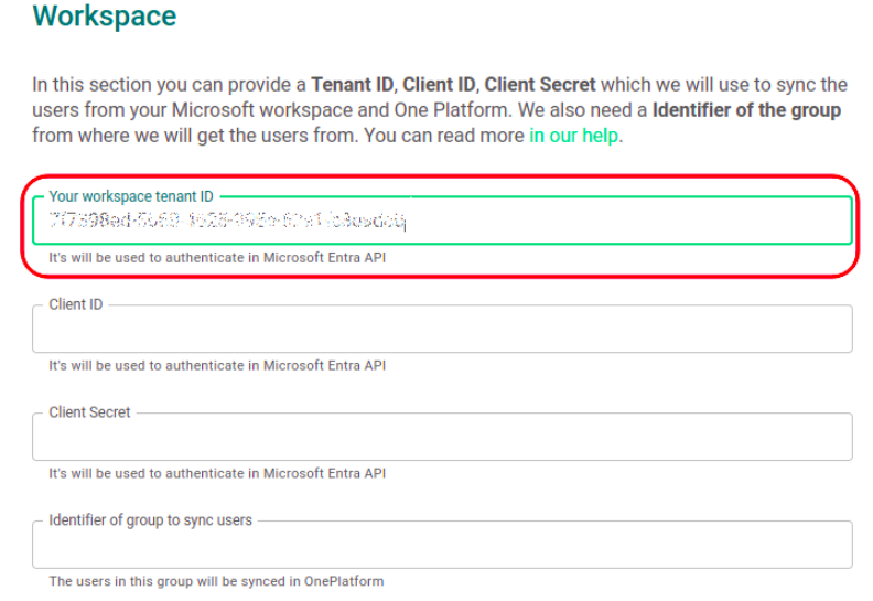 Tenant ID: Unique identifier of the Microsoft Entra directory representing the configured workspace for the organization.