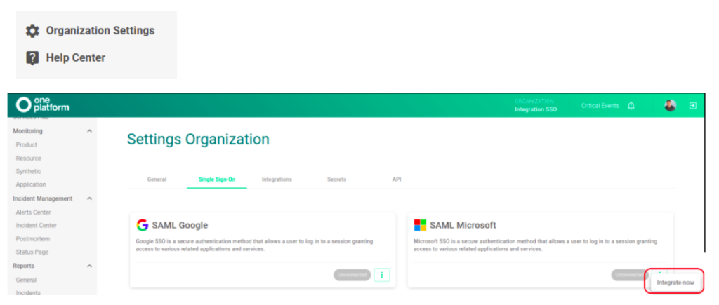 In the Elven Platform, go to Organization Settings in the lower-left corner. Click the three dots next to SAML Microsoft and select Integrate now. A form will appear with the information you’ll need to copy in order to fill out the Basic SAML Configuration in Microsoft Entra. This data exchange creates the bridge between the two platforms.